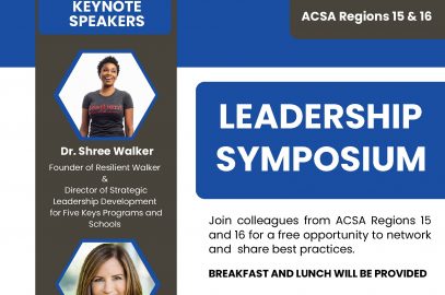 It’s not to late to register for the Region 15 & 16 Leadership Symposium. Join colleagues from ACSA Regions 15 and 16 for a free opportunity to network and share best practices. Breakfast... READ MORE